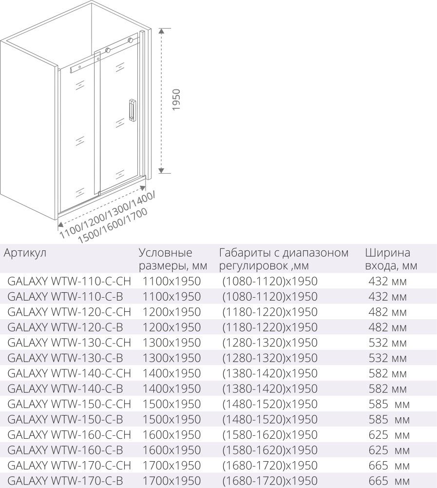 Душевая дверь GooD DooR Galaxy WTW-130-C-B 130x195