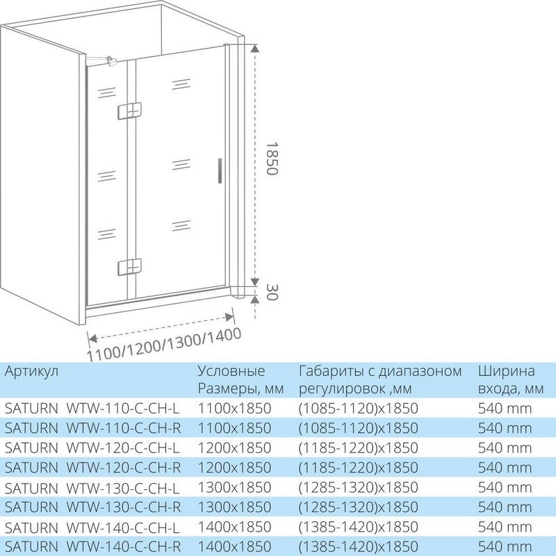 Душевая дверь Good Door SATURN WTW-120-C-CH-L 120x185