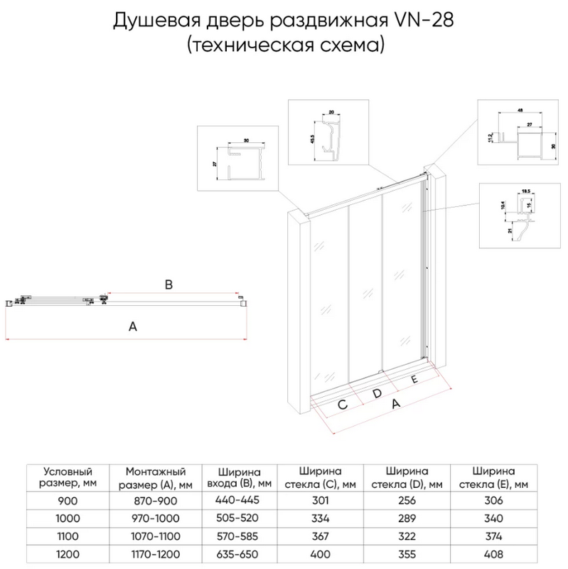 К достоинствам душевой двери Veconi VN28B-90-01-C8 90x195 можно выделить: