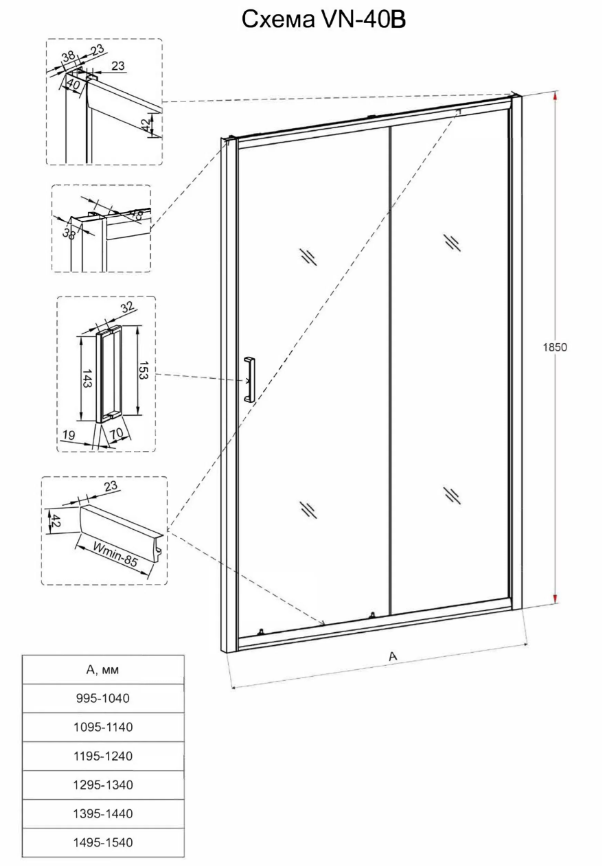 Душевая дверь Veconi VN40B-110-01-C1 110x185