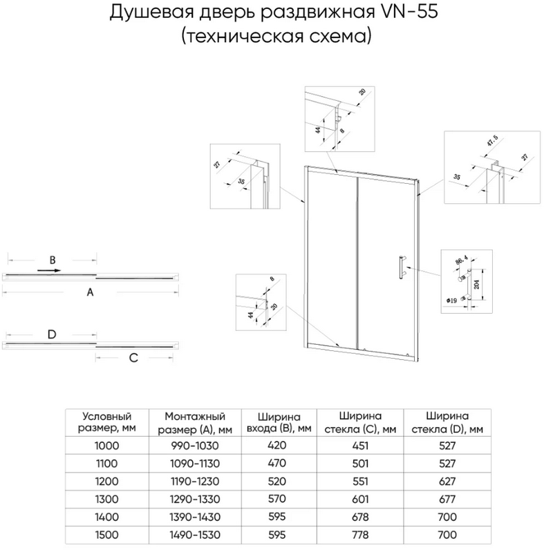К достоинствам душевой двери Veconi VN55M-110-07-C8 110x195 можно выделить: