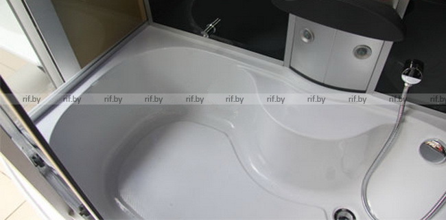 Кроме того, следует отметить, что для более комфортного время припровождения душевая кабина оборудована фоновым освещением, спикерфоном, полкой для душевых принадлежностей, подголовником, сидением, держателем для полотенец, гидромассажером для ступней ног, а также парогенератором, который позволит установить в душевой кабине комфортную температуру для Вашего организма.