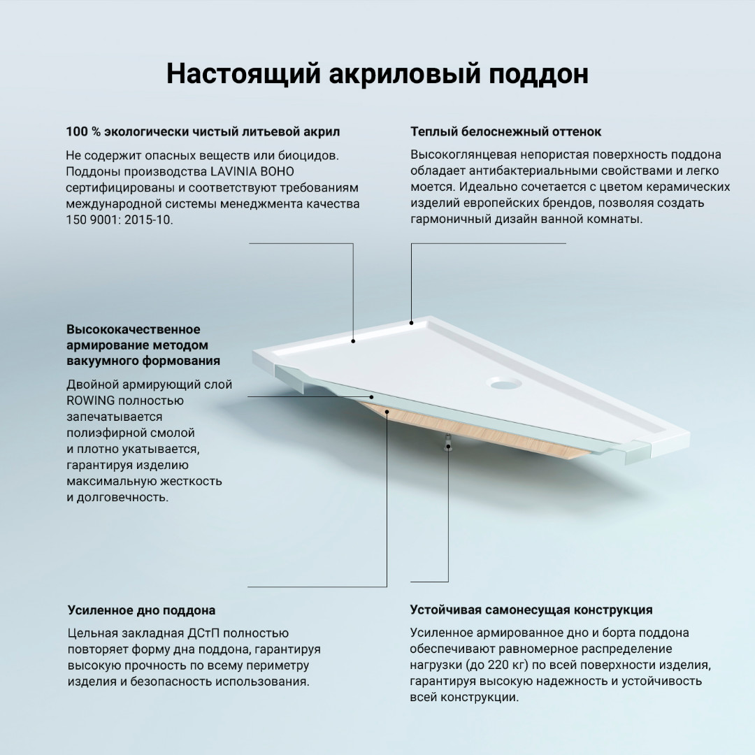К достоинствам душевого поддона акрилового Lavinia Boho One 37017120 120x80x5 можно отнести: