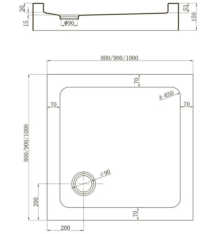 Душевой поддон акриловый Viconi TZ52B-100-C5 100x100x15