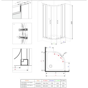 - Длина - 90 см., ширина - 90 см., высота стекла - 185 см.