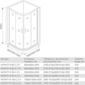 К достоинствам душевого уголка GooD DooR INFINITY R-80-C-CH 80x80 можно выделить:
