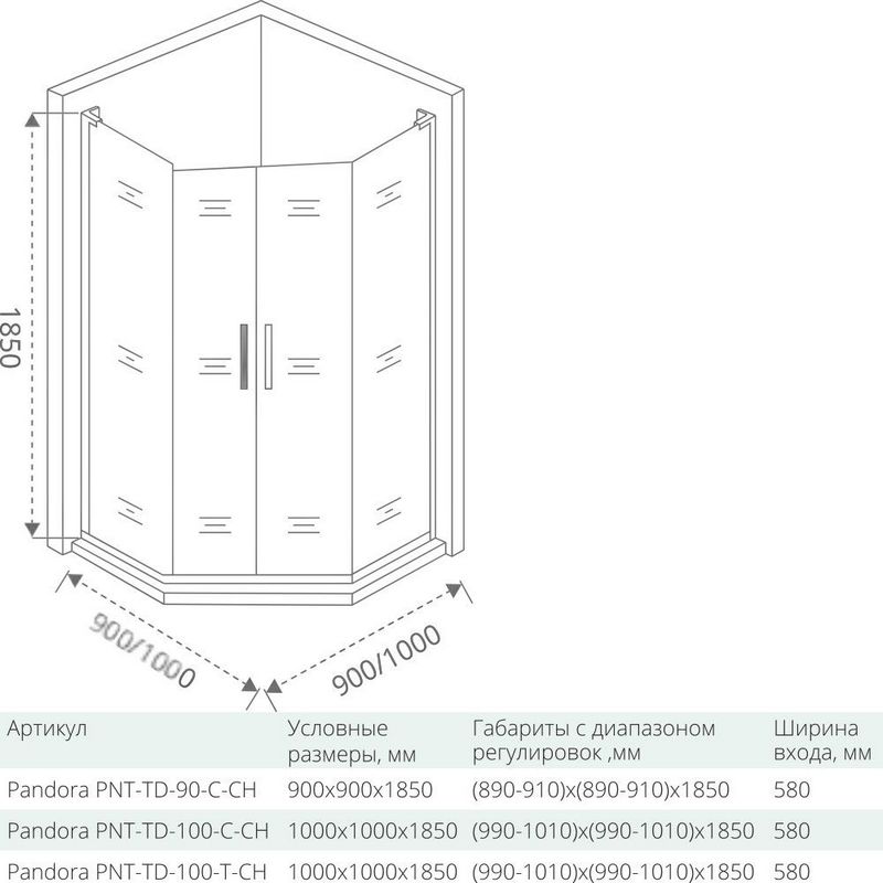 Душевой уголок GooD DooR PANDORA PNT-ТD-100-C-CH 100x100