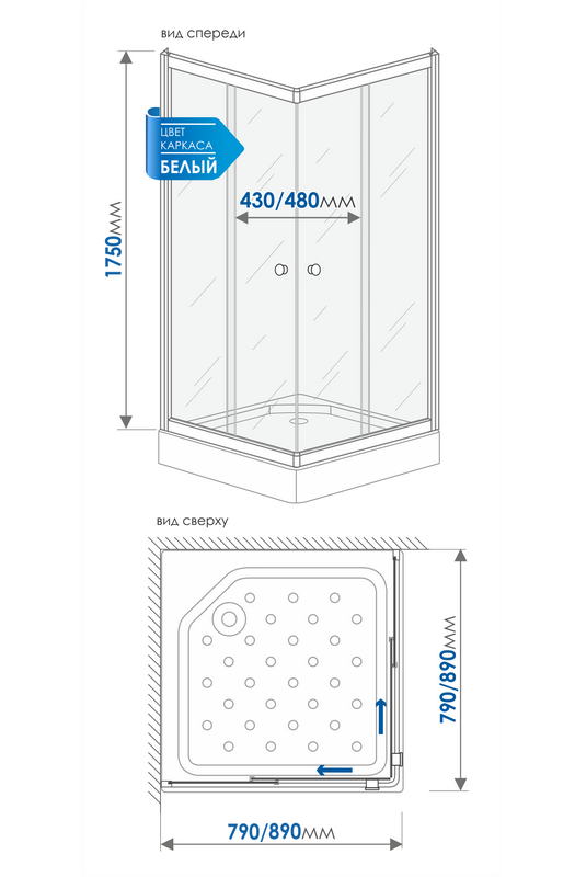 - Дополнительно приобретается: Поддон, сифон, душевая стойка, душевая панель, термостат, смеситель