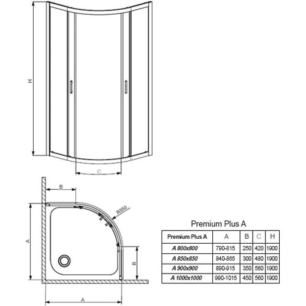 Душевой уголок Radaway Premium Plus A1000 30423-01-(02, 05, 06, 08)N 100x100x190