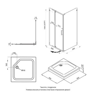 - Дополнительно приобретается: Поддон, сифон, душевая стойка, душевая панель, термостат, смеситель