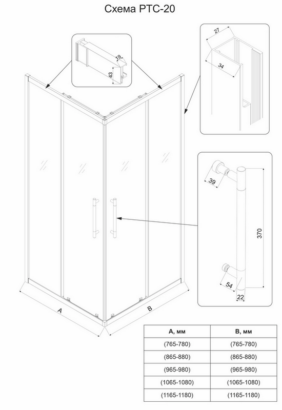 - Дополнительно приобретается: Поддон, сифон, душевая стойка, душевая панель, термостат, смеситель