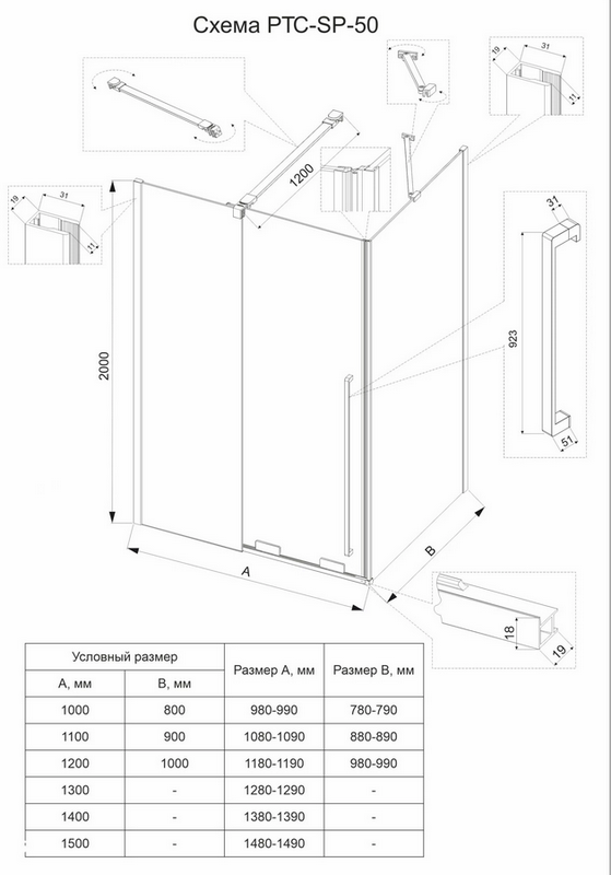 - Дополнительно приобретается: Поддон, сифон, душевая стойка, душевая панель, термостат, смеситель