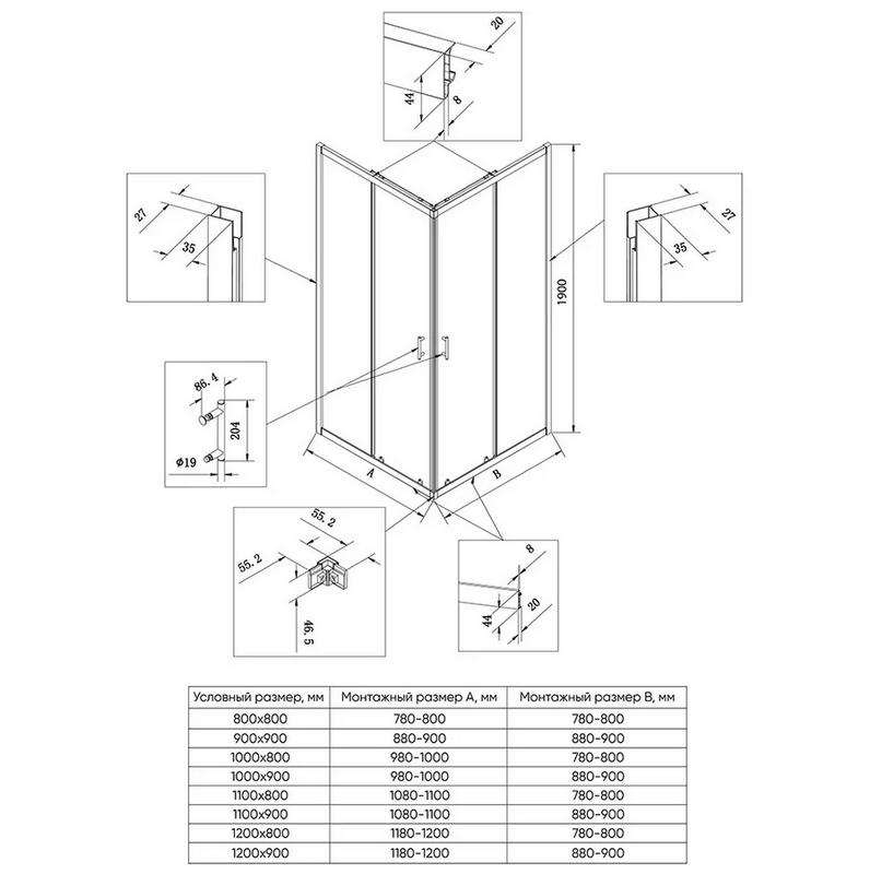 - Длина - 80 см., ширина - 80 см., высота - 190 см.