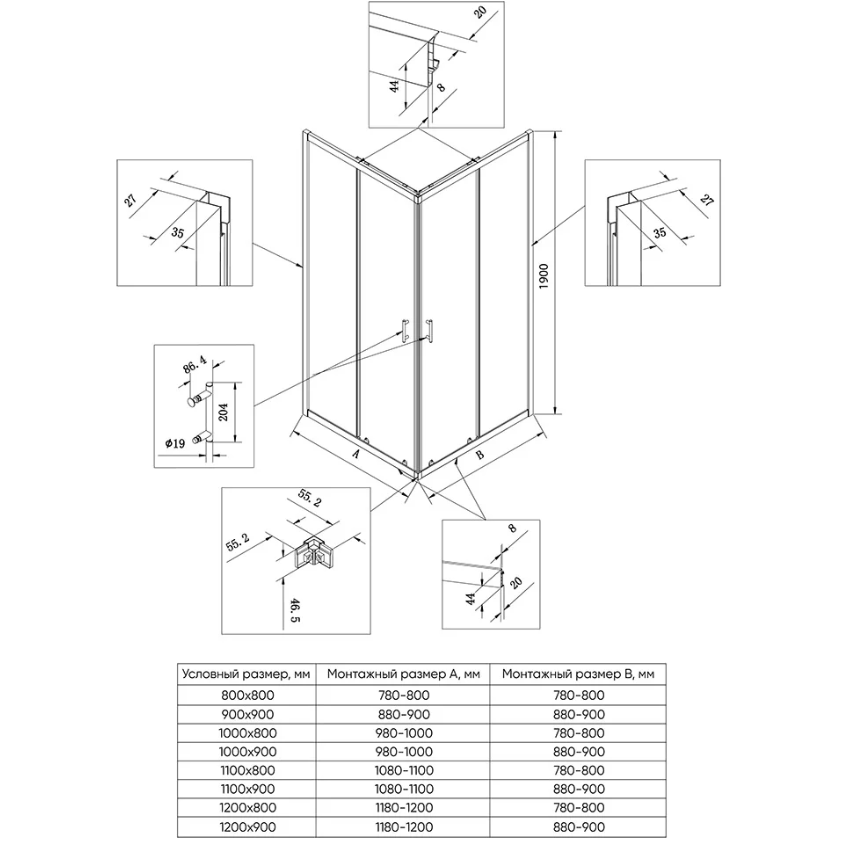 - Дополнительно приобретается: Поддон, сифон, душевая стойка, душевая панель, термостат, смеситель