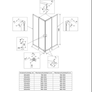 - Монтажный размер: длина / ширина - 1080-1100х780-800 мм.