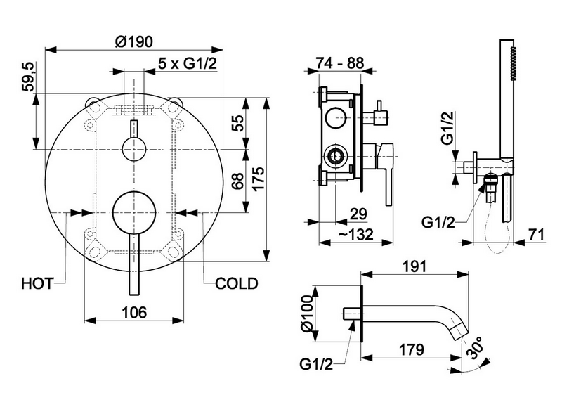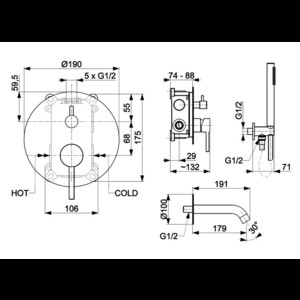 Душевая система скрытого монтажа Armatura MOZA GOLD 5039-401-31