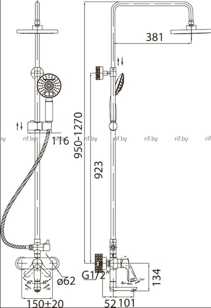 - Тропический и ручной душ с защитой от известкового налета