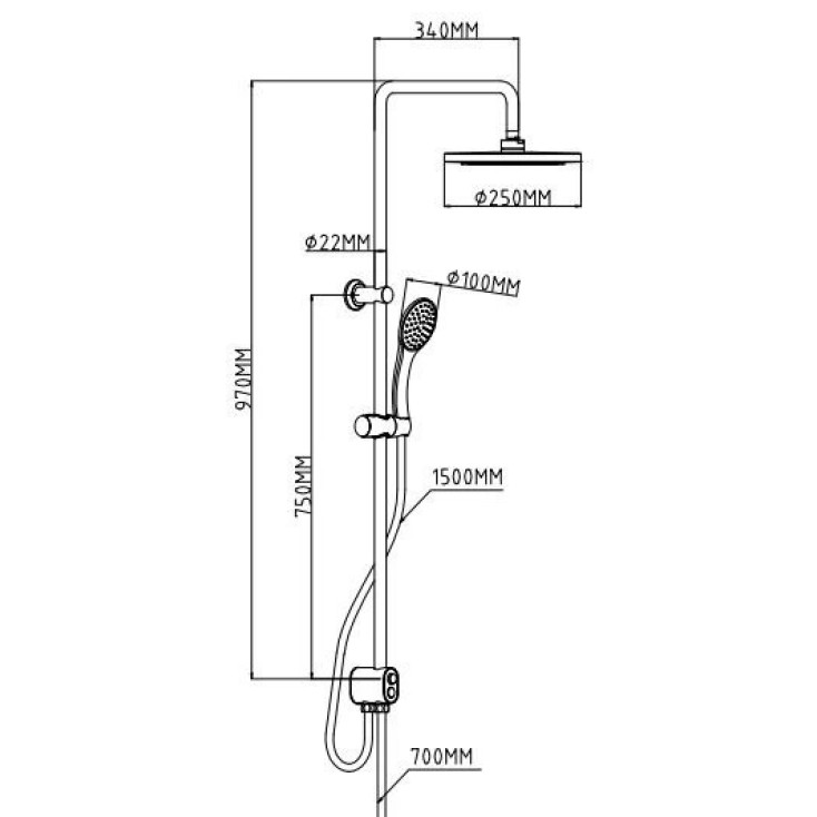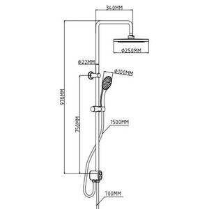 - Верхний душ диаметром 250 мм (ABS-пластик) на подвижном шарнире с углом поворота 20 градусов