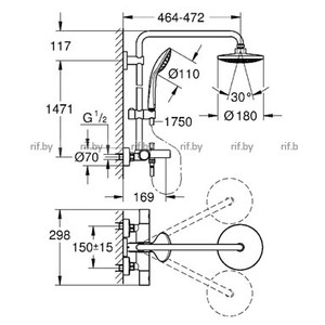 Душевая система с термостатом для ванны; настенный монтаж