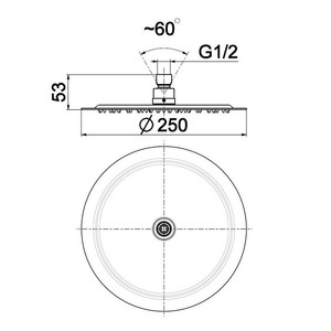- Диаметр верхнего душа 250 мм.