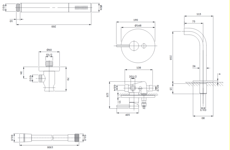 Отличительной особенностью душевой стойки скрытого монтажа Omnires Y Black SYSYW01BL является: