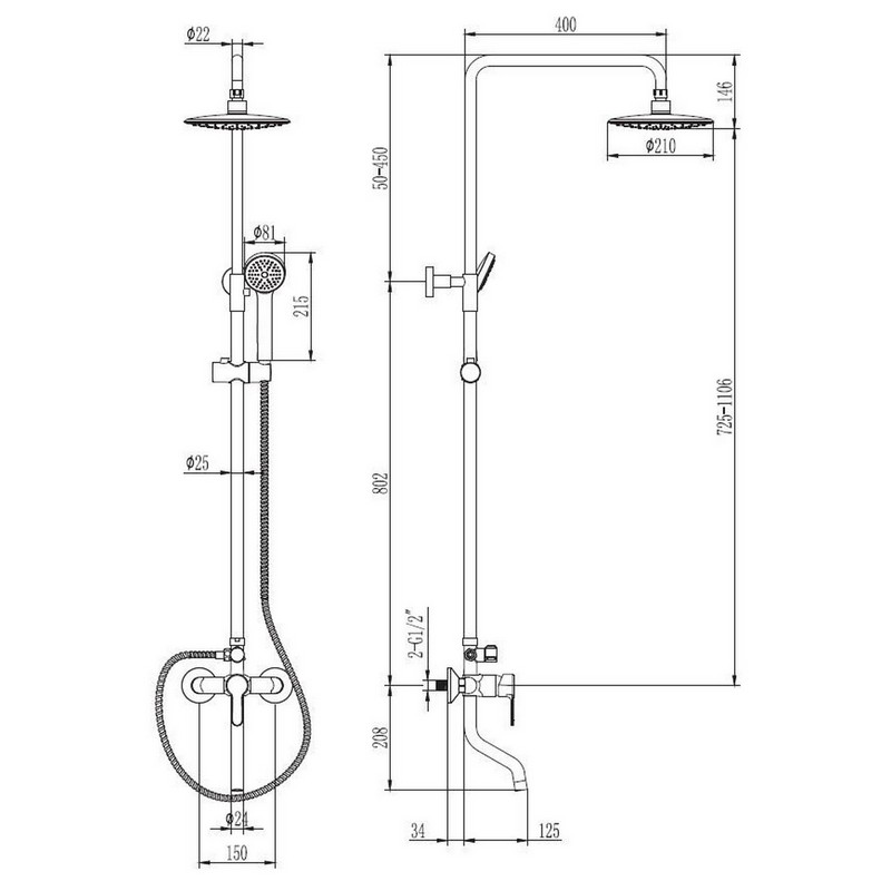 - Верхний душ диаметром 210 мм, АВS-пластик