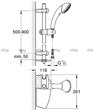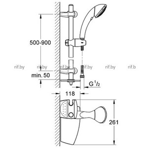 (регулируемое расстояние между настенными креплениями штанги позволяет использовать для монтажа уже имеющиеся отверстия в стене )