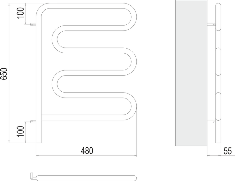 Полотенцесушитель электрический Terminus Электро 25 Ш-обр 450х570 поворотный