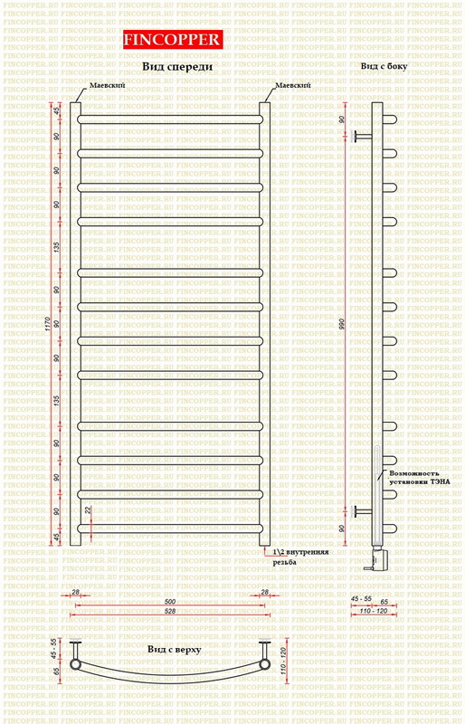 Полотенцесушитель водяной Fincopper FC 1170*500 белый RAL 9016