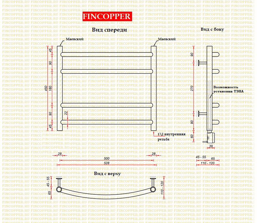 Полотенцесушитель водяной Fincopper FC 450*500 белый RAL 9016