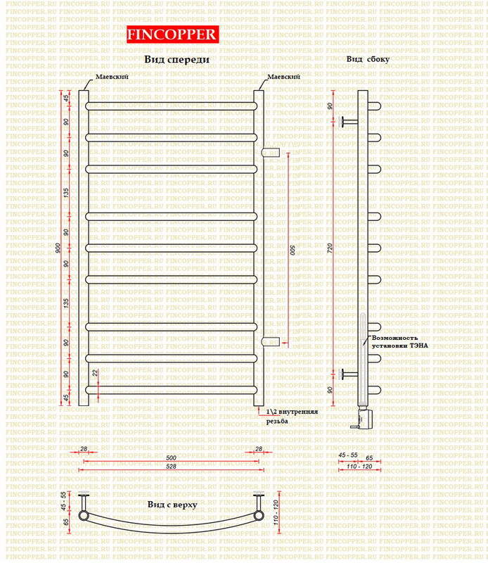 Полотенцесушитель водяной Fincopper FCB 900*500 Chrome