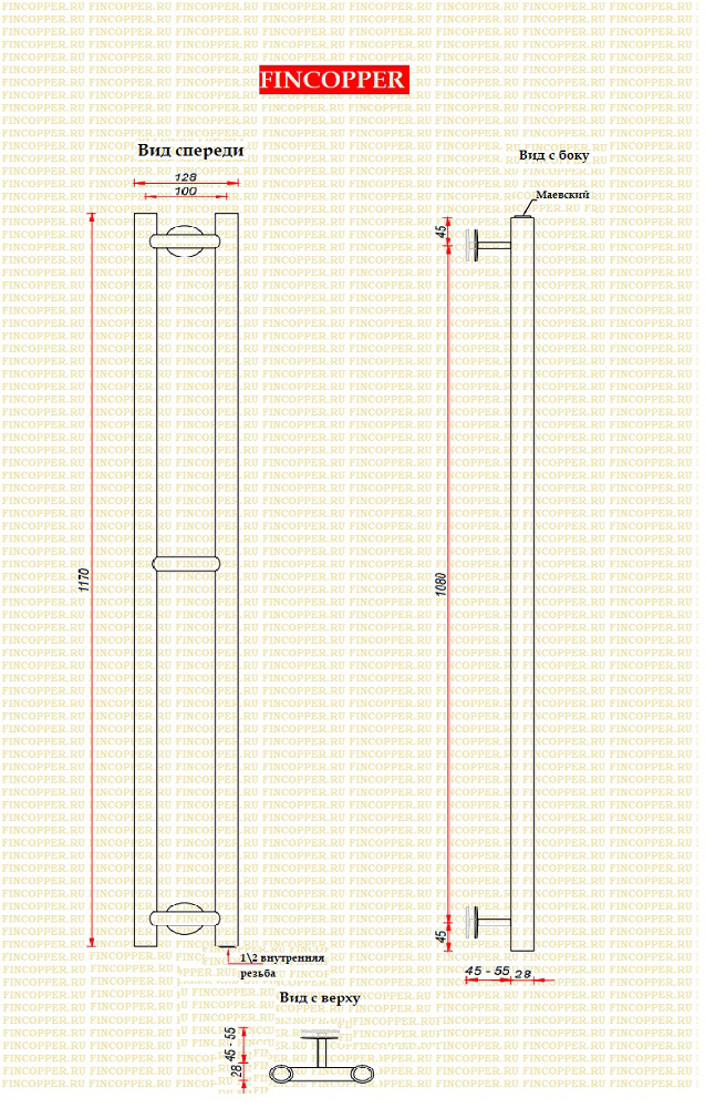 Полотенцесушитель водяной Fincopper FCH 1170х100 Chrome