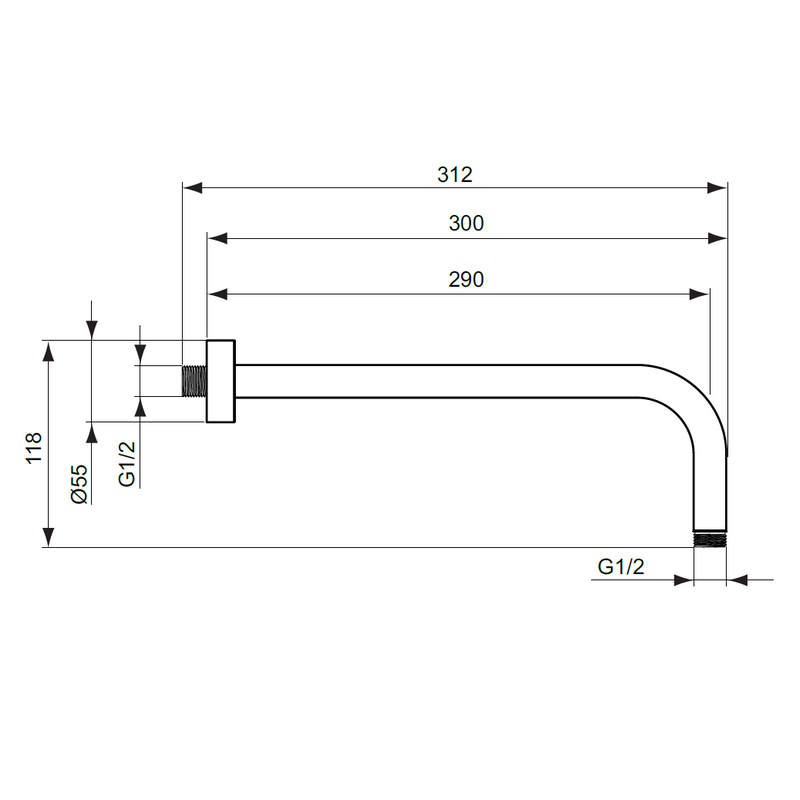 Кронштейн для тропического душа Ideal Standard IDEALRAIN хром 300 мм. B9444AA