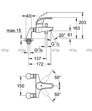 Смеситель для ванны Grohe Eurosmart DN 15 33303001