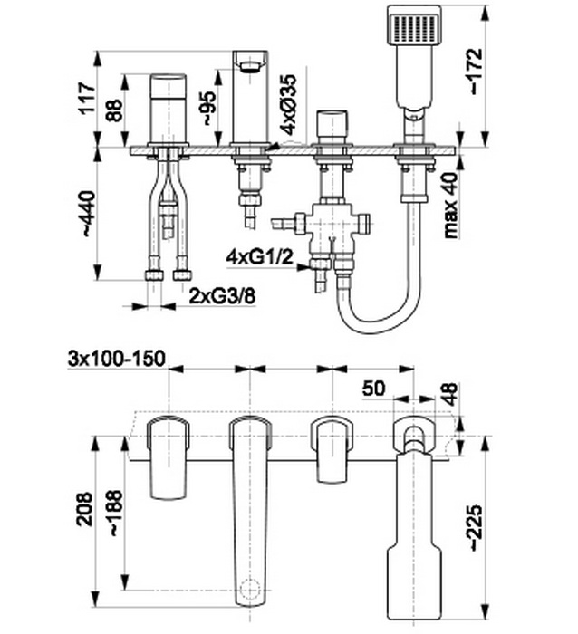 Отличительной особенностью смесителя на борт ванны (врезного) Armatura MOKAIT 5535-210-81 является: