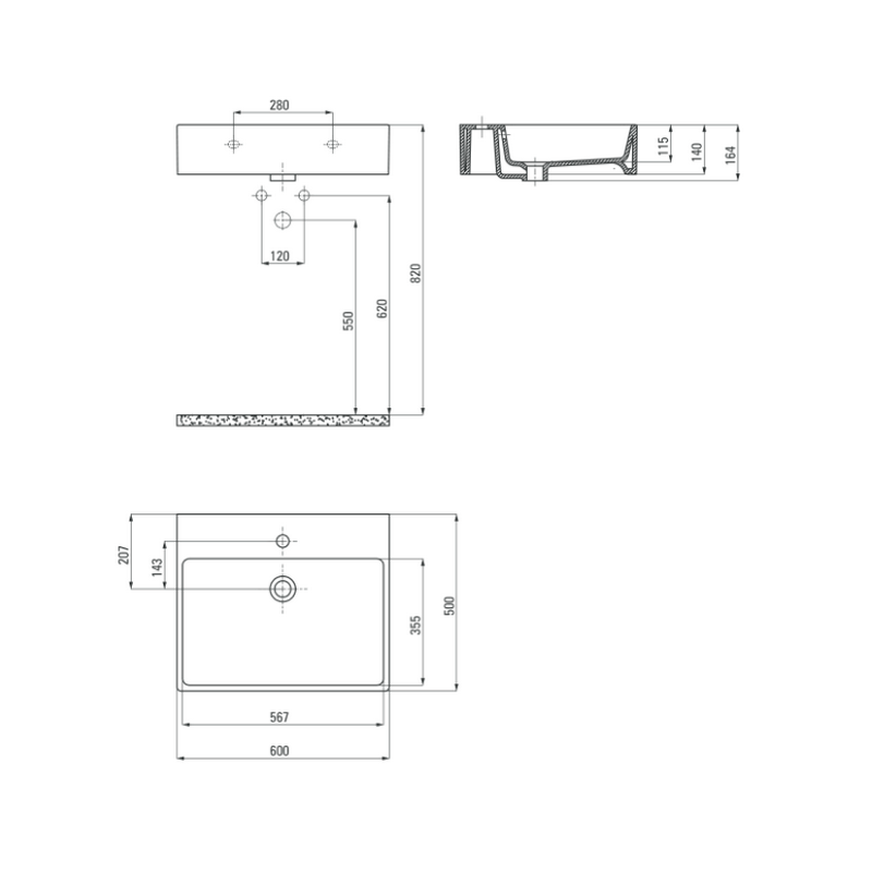 - Отверстие под смеситель: Есть