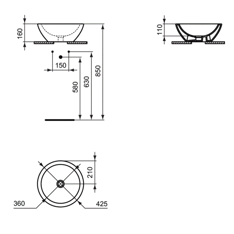 - Раковина выполнена в форме чаши