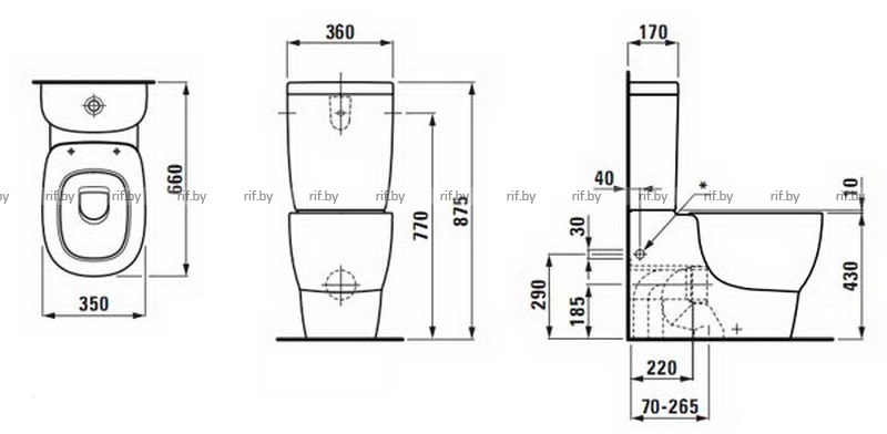 - Дополнительно приобретается: Крышка (сидение), шланг подвода воды, гофра