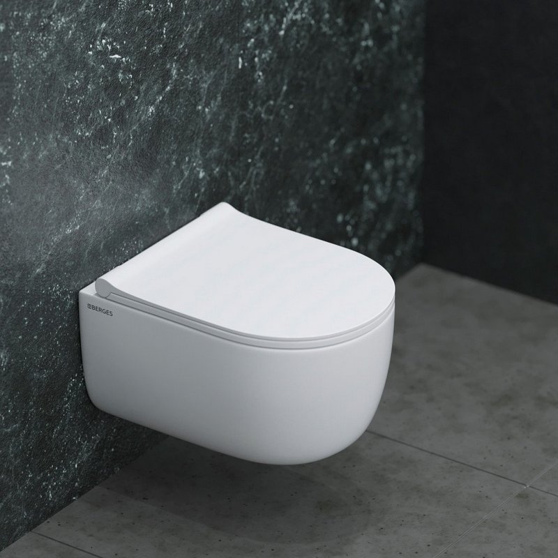 Унитаз подвесной Berges Wasserhaus EGO Rimless безободковый с крышкой Тома slim SO 082111