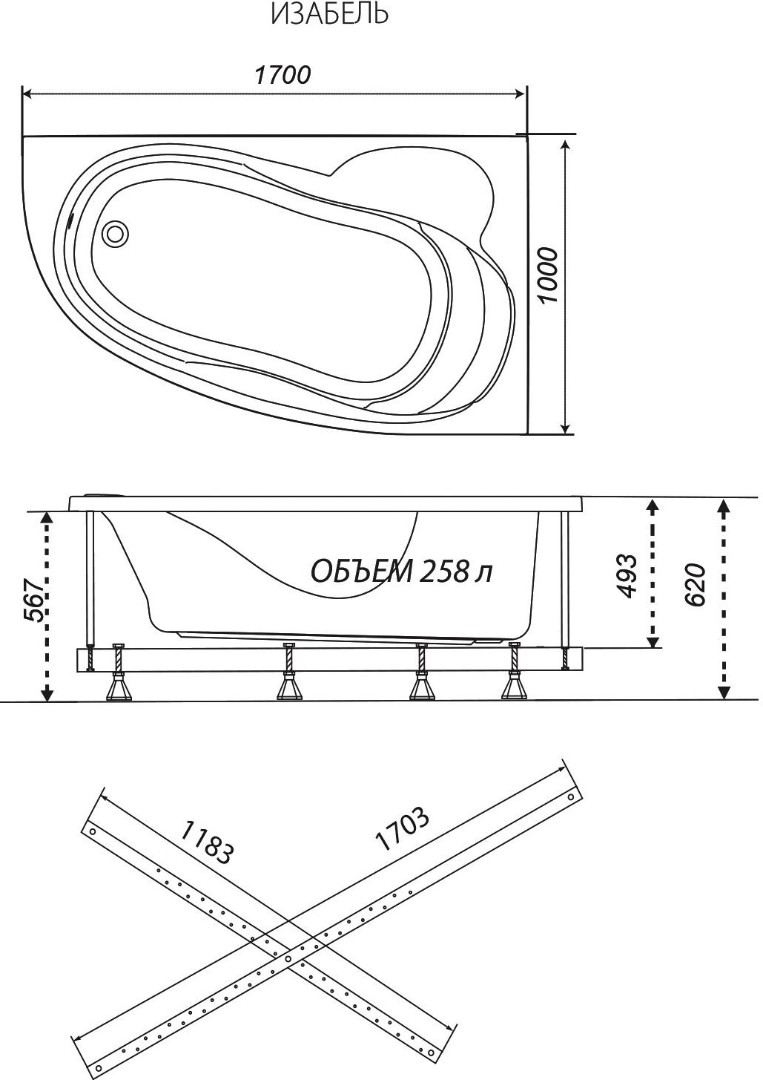 Отличительной особенностью Ванны акриловой Triton Изабель NEW 170x100 левая является: