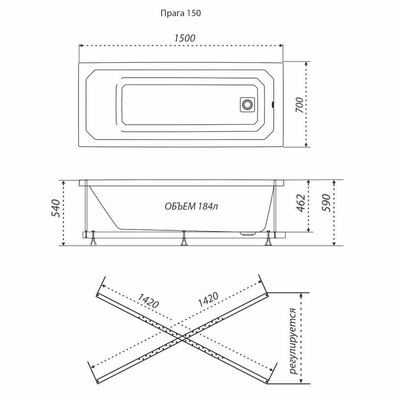 Ванна гидромассажная Triton Прага базовая Flat 150x70