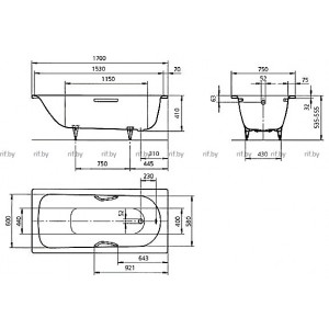 - Дополнительно приобретается: Ноги, ручки, сифон, шумоизоляция, шторки для ванны, душевая стойка, термостат, смеситель