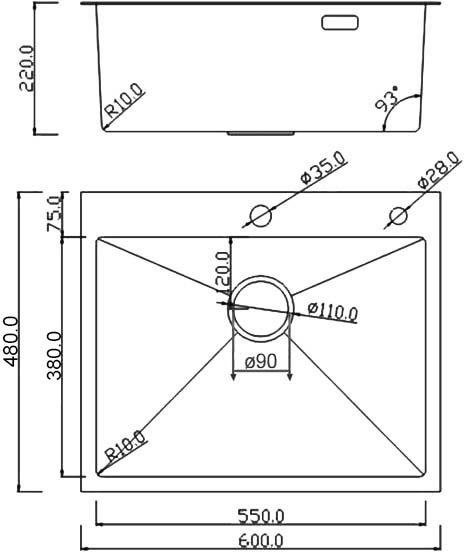 - Длина - 60 см., ширина - 48 см., глубина - 22 см.