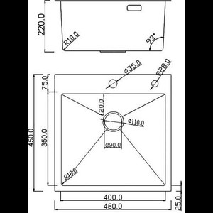 - Длина — 45 см., ширина - 45 см., глубина - 22 см.