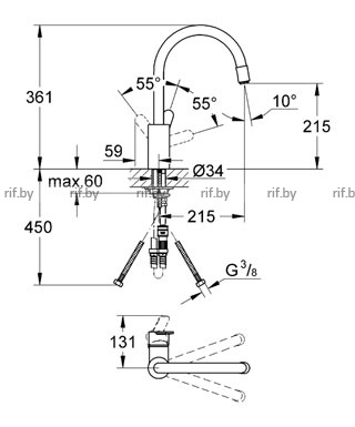 выдвижной излив с аэратором